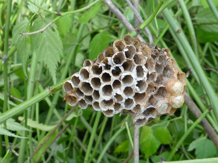 粉砕しているとアシナガハチの巣がありました。この時期、子育てを終わらせ何処へ去ったようです。お~っ!!危なかったですが、悲しいかな右端に子育て途中の幼虫は孵らず仕舞いです。