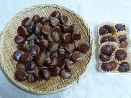 ご近所さんが柚子胡椒作りに挑戦したいとかで青柚子を差し上げましたら、お返しとして過分な生栗と渋皮煮を戴いちゃいました。