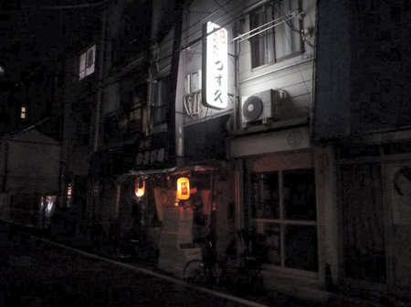 大江戸線牛込柳町駅間近な飲み処つず久。提灯の明かりが輝き始めホヤを食す会が招集されました。