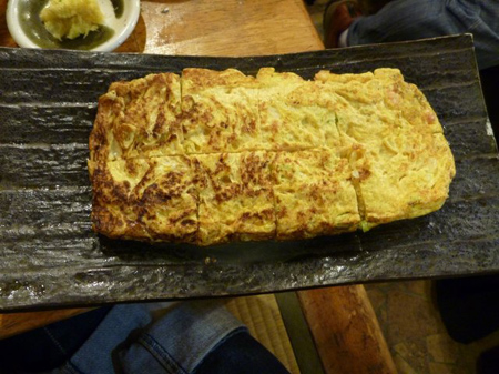 蕎麦屋の卵焼きと異にする野菜タップリ居酒屋の卵焼き。大きさもさることながら飲兵衛喜ぶ一品です。