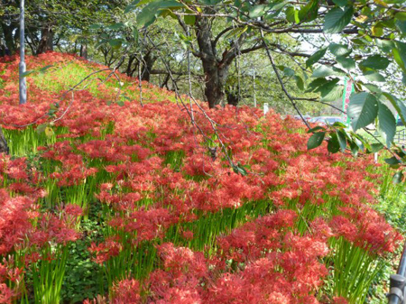 堤は彼岸に合わせたように曼珠沙華の火焔に包まれておりました。