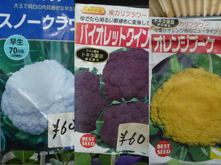 カラーカリフラワーは葉で覆わなくても良いそうです。好奇心から3種を求めてしまいました。