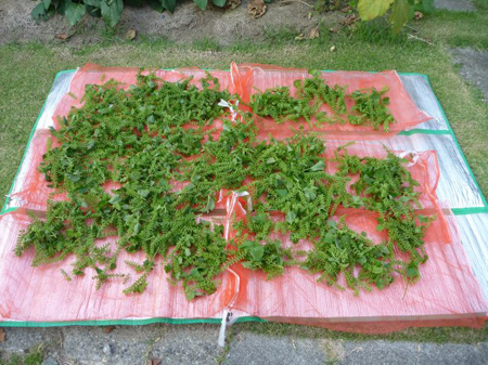 穂紫蘇を収穫しました。帰宅後に仕込みやすいように水洗いして乾燥中です。