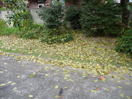 すごい量の落葉です。落ち葉掃きするに風が在ればカラコロと転がり大変です。