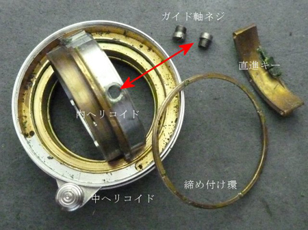 鏡筒にガイド溝ある仕様は、此処でバヨネット環を外しますとフエルトとガイド溝鋼球が2ヶ所あり収めるのに苦労します。