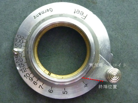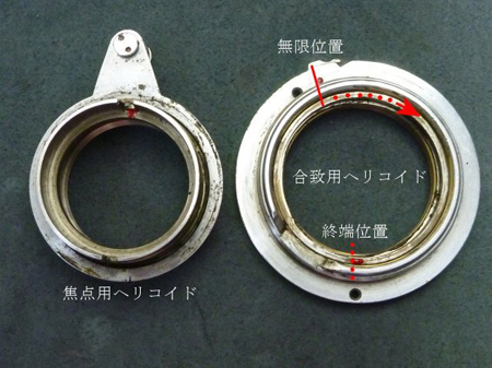 終端位置を確認して無いのは合致用ヘリコイドです。良く観察しますと鏡筒側には抜けてしまわないようでした。