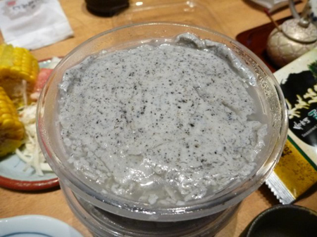 埼玉菜園の豆腐屋で求めました胡麻豆腐。普段見かける吉野葛で固めた胡麻豆腐と違い大豆豆腐と胡麻の風味が香り、笊豆腐のような胡麻豆腐で生下ろし山葵で頂きます。