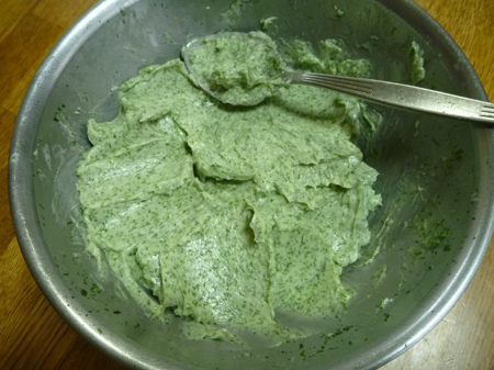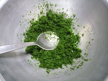 刻んだフェンネル・パセリをすり下ろし大蒜2欠けを均一に合わせます。