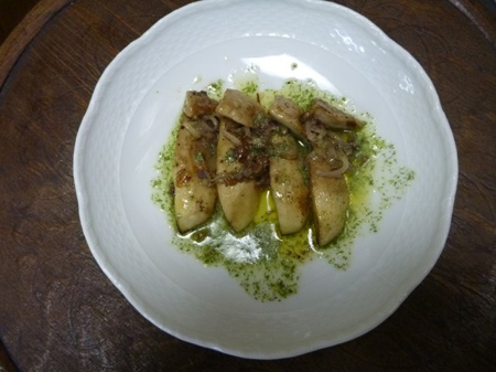 イタリア展で求めた生ポリチーニのフェンネルバター焼き。加熱されたことで香が漂います。食感がシャキシャキで美味しいキノコです。