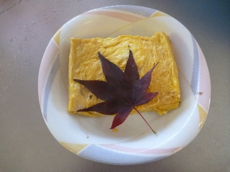 綱島蕎麦友お得意の出汁巻き玉子。アクセントに紅葉を飾り良い出来です。