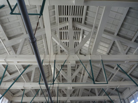 自動繰糸機が据え付けられている内部の空間を保つための「トラスト構造」です。