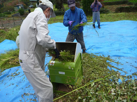 参加者声無く排出されたゴミを見つめます。ゴミの大方が蕎麦粉にならない未成熟でした。