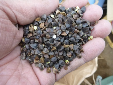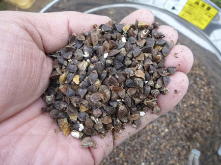 旧津久井町根小屋での作業は此処で終了。東京に持ち帰り新宿仲町蕎麦の膳・たかさごで粒選別され、粒毎に外皮剥きされ、丸抜きと言う甘皮に包まれた実になります。