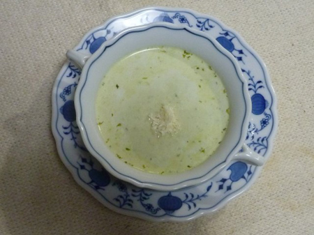 最後にパルメザンチーズを摺り下ろし、コクを出してグリーンスープとしました。