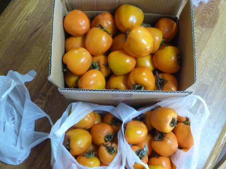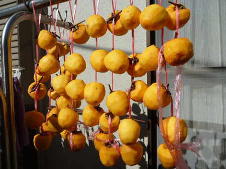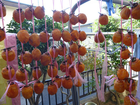 東京でも干し柿が作れます。ご近所に渋柿をお持ちの方がおり、焼酎抜きをしていましたが一度に渋が抜けて食べきれないうちに熟度が増して困りましたと話されます。