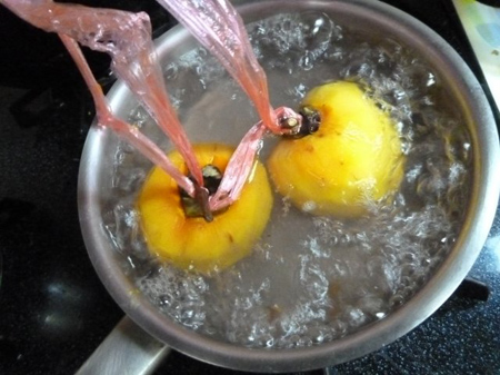 ここで早く満遍なく渋が抜けるように薄皮を破らないようモミモミします。