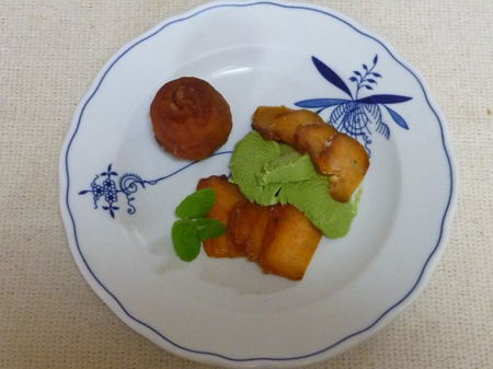 10日目を冷凍したのをスライスしてグリーンティーアイスと合わせますと、お洒落なスイーツとなります。