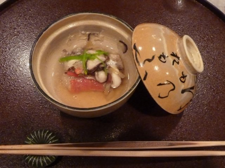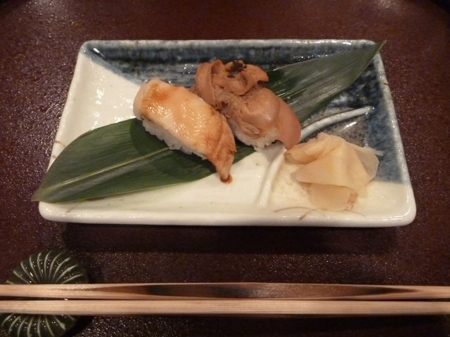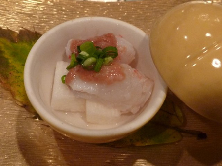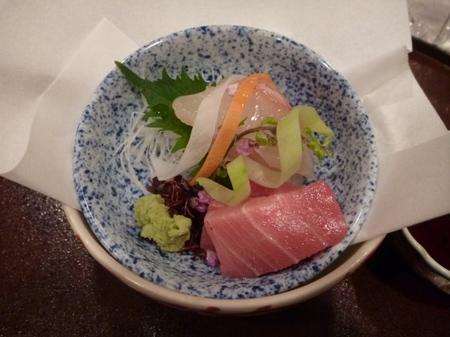 造り:鳴門鯛昆布〆に鮪。折角でしたので鯛の湯引きを一片欲しかったです。