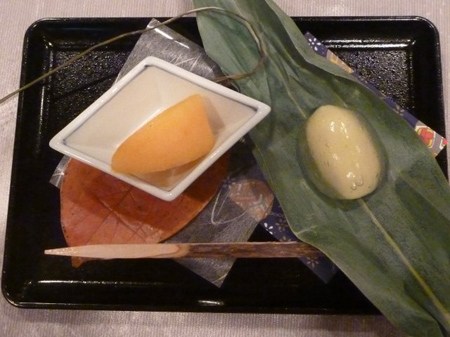 水菓子:柿・笹カスタードで全ての料理を味わいました。