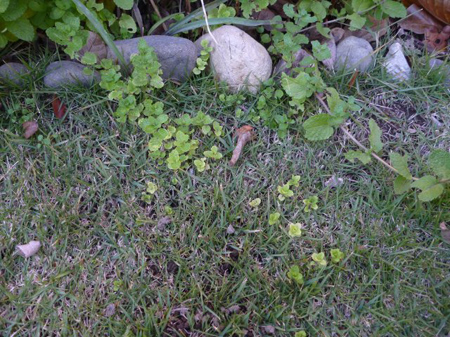 芝生へ勢力を伸ばしているミントを見つけてしまいました。