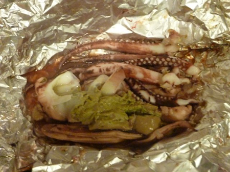 飲兵衛には堪らないゲソのワタ包み焼き。隠居人、飲兵衛でないから。。。遠慮しました。