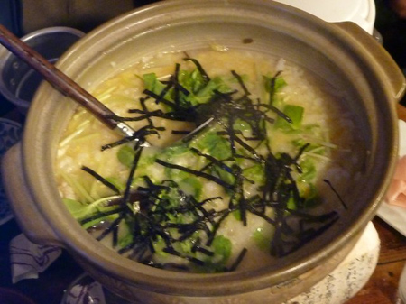 美味しく頂いた後は定番の雑炊です。キンキから出ました出汁は最高!