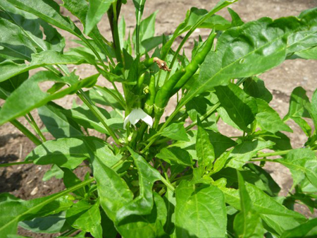 青唐辛子が成り始めました。香りある美味しい柚子胡椒を作るには青柚子の成長を待つばかりです。