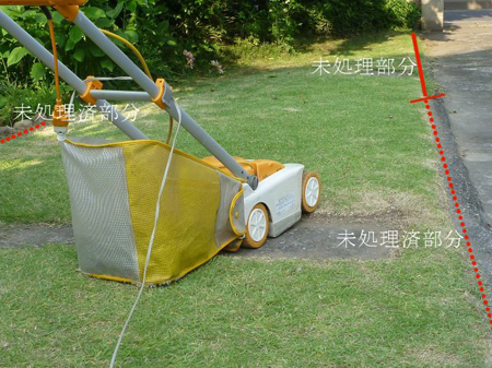 本年、初めての芝刈りです。随分伸ばしてしまいました。すでに梅雨に入り多湿で病気になりましてもいけませんし、これ以上伸ばしますと刈り取りも大変です。