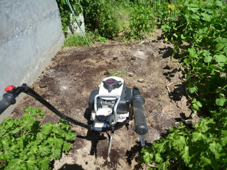 トウモロコシが植えられていた場所を耕運し正月用の三浦大根を播種します。
