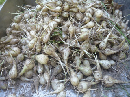 塀際に植え付けてあるラッキョは上品な粒に育っていました。