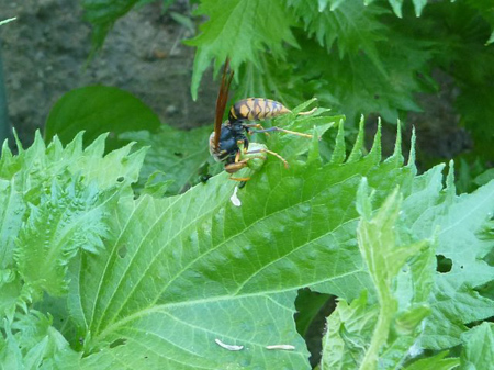 本紫蘇は消毒しませんと虫食い状態になります。となると蜂の捕食より害虫の繁殖のが勝るようです。
