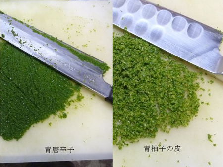秋刀魚の季節となれば柚子胡椒。手作りは香りと辛さが違います。でも青唐辛子の辛味成分カプサイシンが残ってしまいますのでミキサーを使用できません。