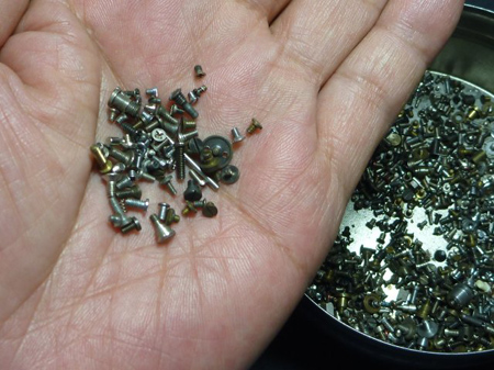 当然と申しましょうか!同じネジなど持ち合わせていません。微かな願を込めて在職時代保存しておりました雑ネジから探す事にしました。