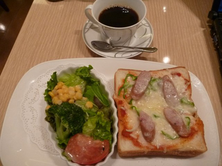 朝が早く集合時間間近ですが腹ごしらえを致します。案の定、携帯が鳴ってしまいました。