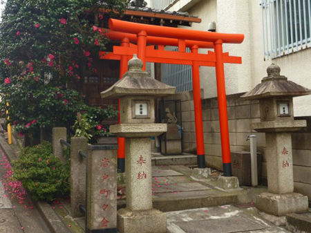 お寺の境内を抜け、表通りに抜けることが出来き、住民の近道に利用されているのでしょうね。下り口に地域を守るお稲荷さんがありました。