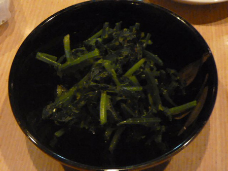 菜物の煮浸しに柚果汁を加えてあります。お~っ!!と吠えるほど美味しいです。