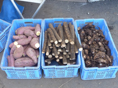 薩摩芋は大豆を炊く際に焼き芋と致します。牛蒡と里芋は豚汁の具となります。