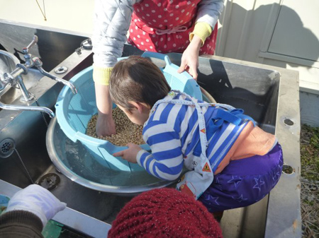 何にでも興味を示す最年少参加者で3歳の坊やです。大豆作りの際は畑を駆けずり回っていました。危なくて母親は目を離せません。