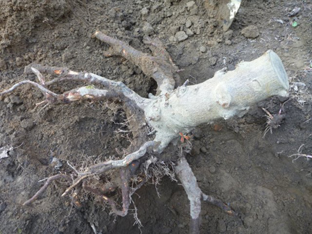 横に広く根張りをしていました。全ての根を掘りますと数倍の面積を掘らねばなりません。