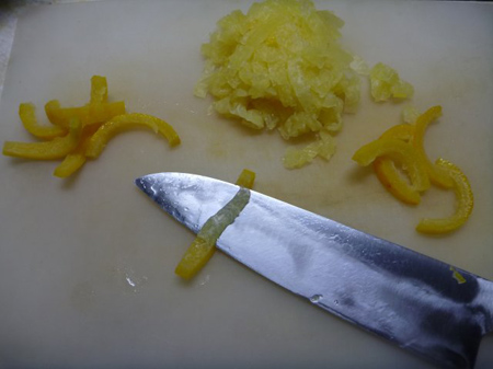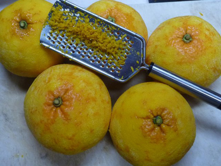 果皮にブツブツがあり油胞と呼ばれています。チーズブレンダーで削り油胞の出口を作ります。削りました果皮を舐めると言い表せない苦みを感じます。