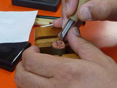 地域振興を含めた物作り体験教室が人気です。カメラ修理教室のお仲間と小枝印鑑作りに参加してきました。