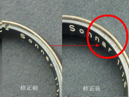 尚、前環と社名環(フィルターを取り着けるネジ切り)のノリシロが僅かですし、修正するには可なりの衝撃を与えます。となればレンズバルサムの剥離に繋がる恐れがあります。