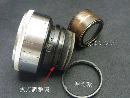 鏡筒部とマウント環を分離した際に注意すべきは焦点調整環の処置です。