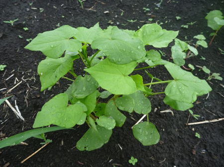 早、本葉もしげり始めましたがチョイト小さめでした。八峰町では草丈は短い様で暖地では如何なりますでしょうか?