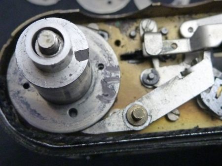 やっと巻き戻し軸が分離出来ました。回転が重い原因は摩耗した際の金属片でした。