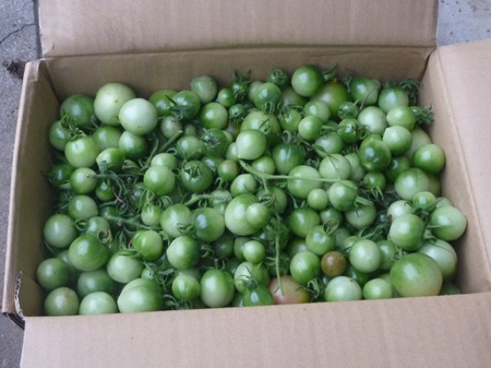 雨が続き菜園へ出掛けられませんでした。トマトが繁忙してものすごい姿になっています。