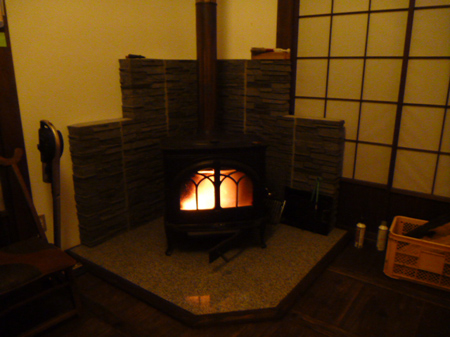 チョイト火を入れましょうね!と薪ストーブの温もりに包まれました。