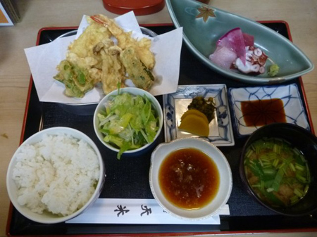ガード下の一店に入り天ぷら刺身定食で脳を喜ばせます。