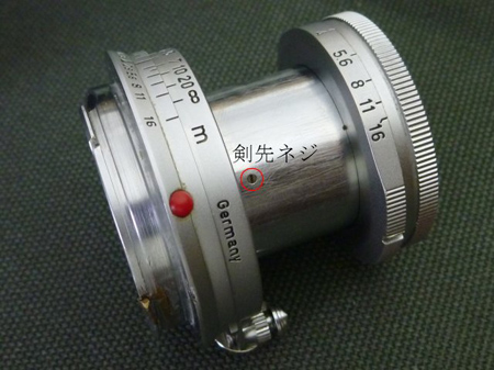 絞り値定点環は赤○部の剣先ネジを外しますと捻ることが出来ます。