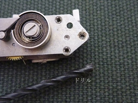 カシメ直すには外れた軸ののりしろ確保にドリルで揉みます。